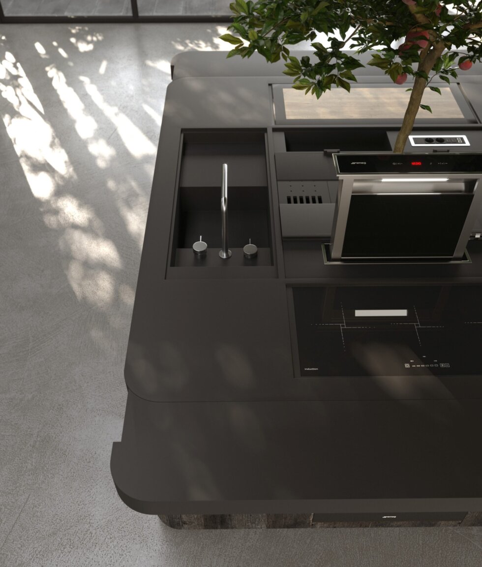 Η “Oasi” της ARAN Cucine είναι ένα καινοτόμο και εξαιρετικά πρωτότυπο σχέδιο κουζίνας που αναπτύχθηκε σε συνεργασία με τον Stefano Boeri Architetti. Σχεδιασμένη να είναι κάτι περισσότερο από μια απλή κουζίνα, η “Oasi” αντιπροσωπεύει έναν χώρο συνάντησης και κοινωνικής αλληλεπίδρασης, μια “όαση” στο κέντρο του σπιτιού.